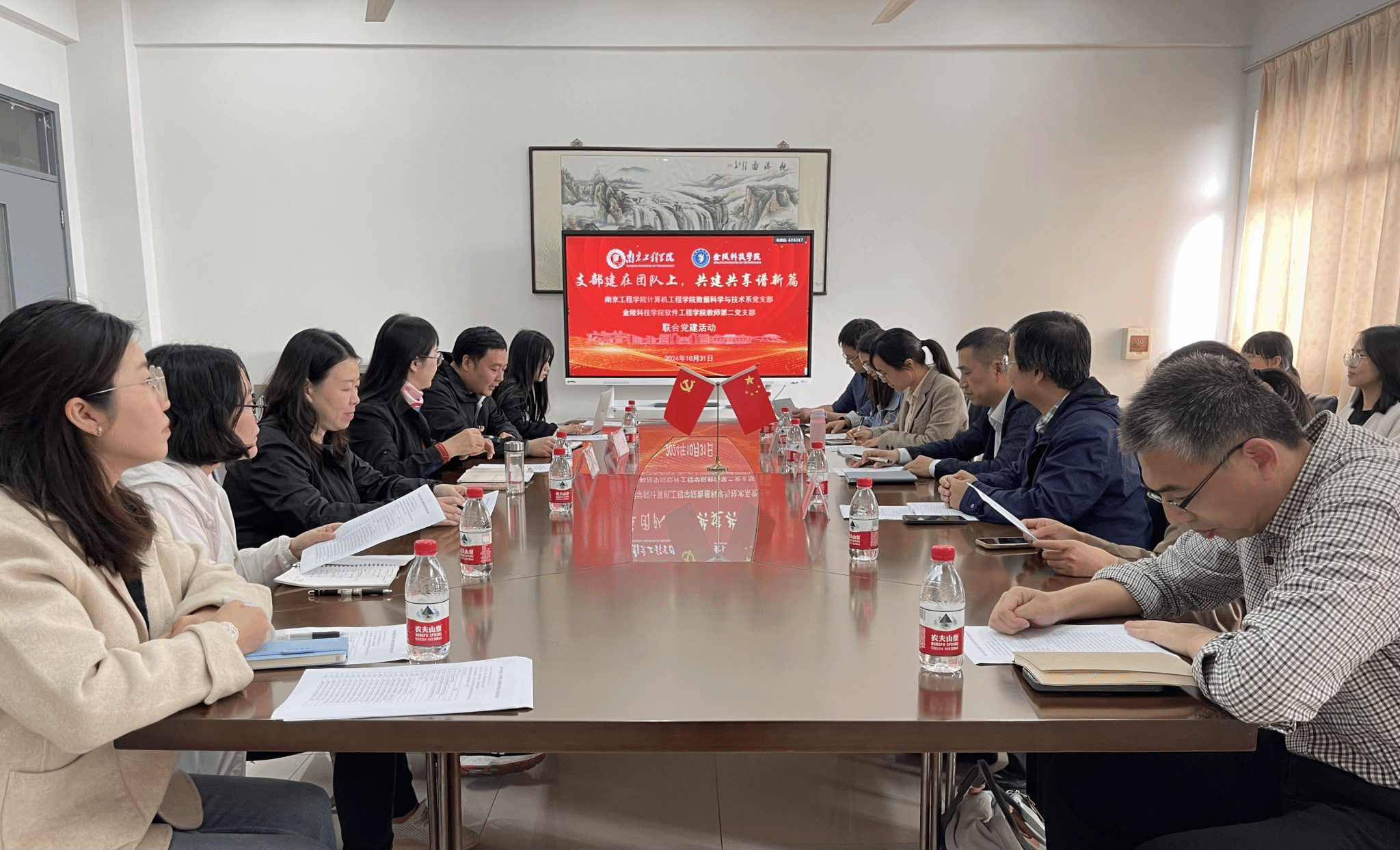 2024年10月31日下午,我校yd12399云顶集团第二党支部党员教师赴南京工程学院计算机工程学院开展了教师党支部联合党建活动。南京工程学院计算机工程学院党委书记王晓红、数据科学与技术系党支部书记李大伟以及全体教师党员,我校我院党委书记戴军,副院长、教师第二党支部书记赵海峰以及全体教师党员参加了本次活动。本次活动由南京工程学院计算机工程学院数据科学与技术系党支部书记李大伟主持。
