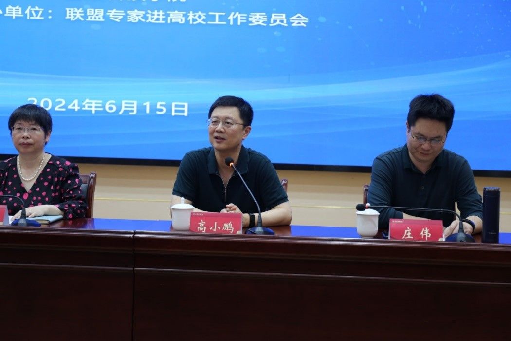 信息技术新工科产学研联盟秘书长高小鹏教授致辞。他介绍了联盟进高校活动的情况,并希望本次活动能为金陵科技学院专业建设等各个方面问诊把脉,更好的助力金陵科技学院的新工科建设,提升专业内涵建设,为顺利通过工程教育专业认证奠定基础。