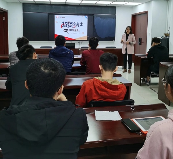 随后,优秀毕业生——敏捷技术中心售后部经理贡华杨学姐结合自己亲身经历,以视频形式与在座应届生分享了自己在敏捷工作的经验与感受,让同学们对即将面临的职场生活有了更深层次的理解。