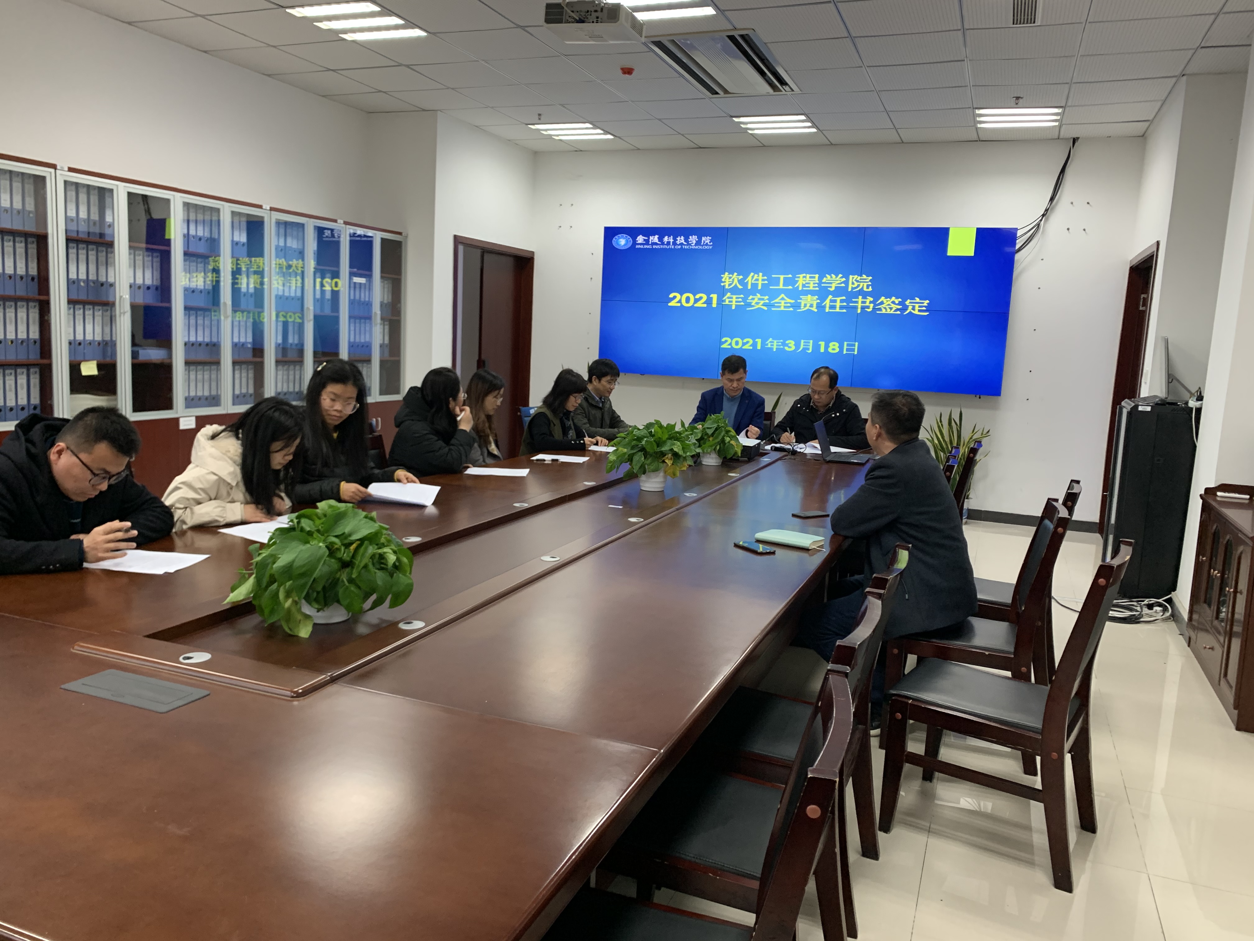 会上,曾岳院长传达了18日上午学校安全工作会议上有关安全稳定工作、校园安全专项整治三年行动、实验室危化品安全使用专项治理工作的精神要求,强调各系(室)、中心负责人必须高度重视各自分管部门的安全管理工作,确保安全无事故。随后,学院领导与系(室)、中心负责人签定了安全工作责任书,同时组织各办公室、实验室责任人签定了办公室安全文明管理责任书、实验室安全管理责任书。徐志国书记要求各部门必须高度重视安全稳定工作,牢固树立“安全无小事、人人有责”的安全防范意识,紧紧抓住“责任落实”主线,确保安全稳定。