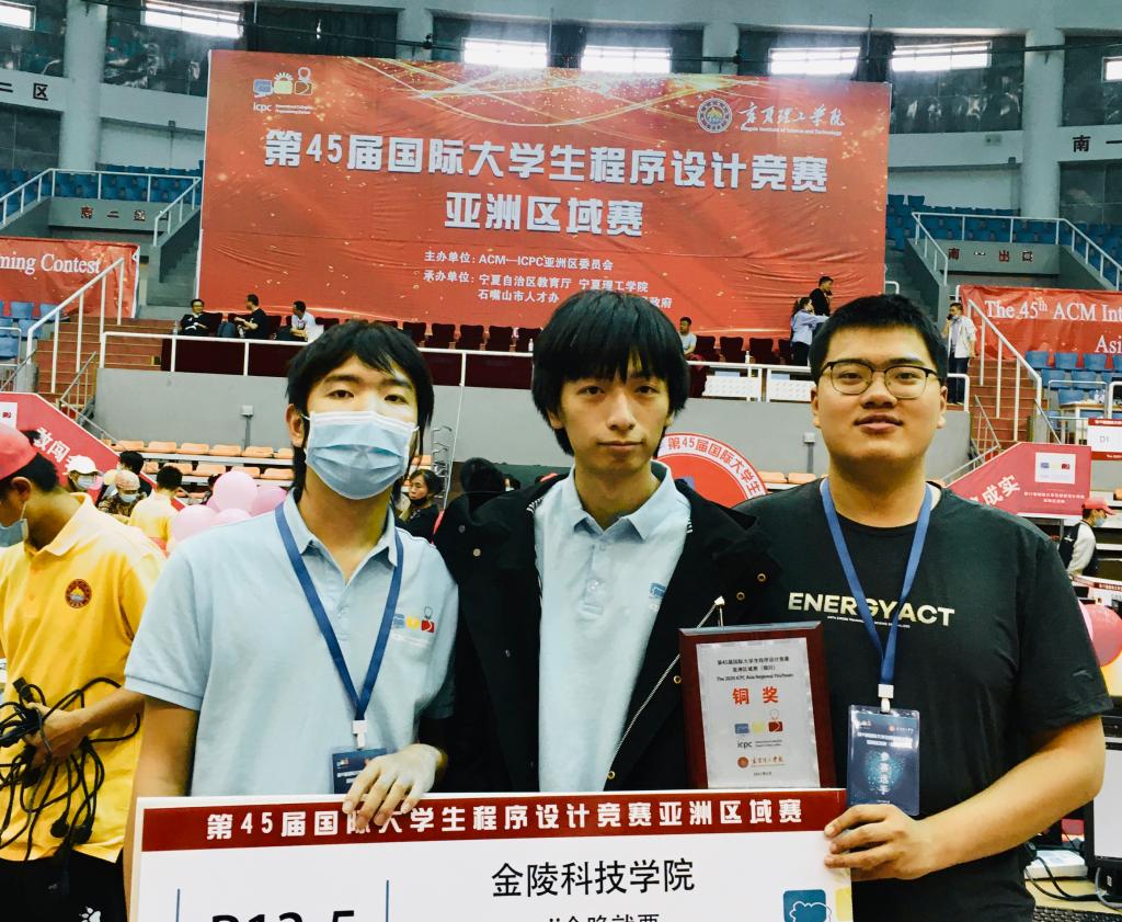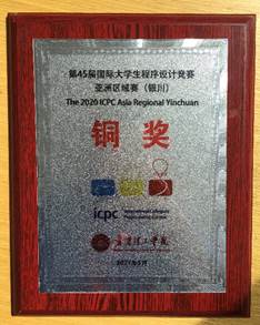 在第四十五届国际大学生程序设计竞赛(ICPC)亚洲区域赛(银川站)中,三名参赛选手代表学校获得了铜牌的好成绩,这是我校历史上首次在此最高级别的国际程序设计赛事中夺牌!