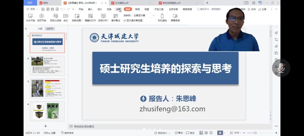 6月10日晚,天津城建大学朱思峰教授应邀作题为《硕士研究生培养的探索与思考》的线上交流报告。yd12399云顶集团优秀学科骨干教师参加了交流,讲座由yd12399云顶集团院长曾岳主持。