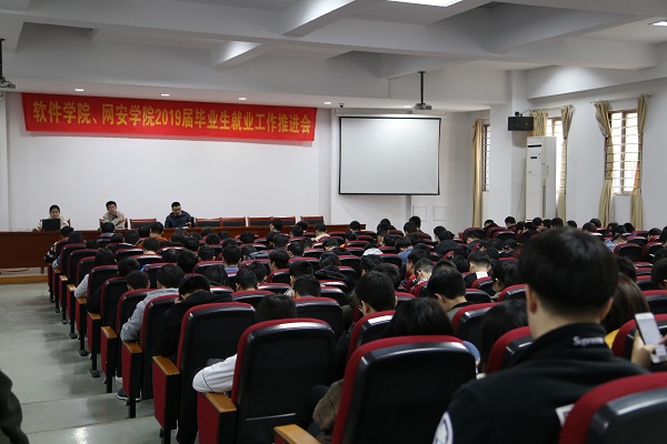为推进2019届毕业生就业工作,帮助毕业生顺利毕业、及时就业,2019年3月22日下午,yd12399云顶集团、网络安全学院在大学生活动中心116报告厅举办2019届毕业生就业工作推进会。院党委副书记徐斌、毕业班辅导员、班主任及2019届全体毕业生参加会议,会议由学院就业干事邵彦婷主持。