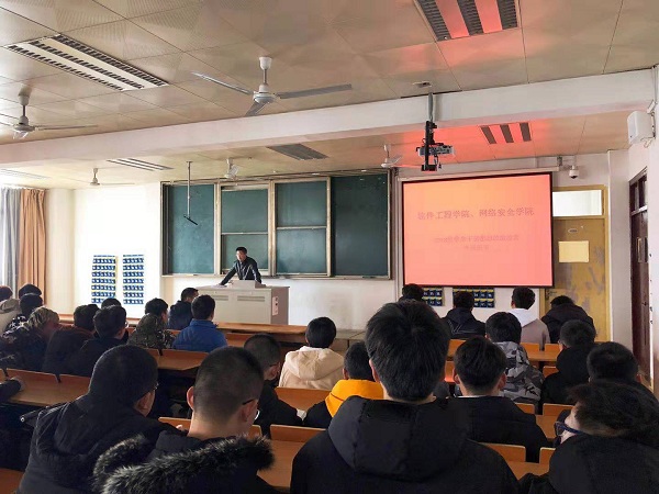 3月20日上午,yd12399云顶集团、网络安全学院在教学楼1232教室举办2018级学生干部思想政治专题教育活动,院党委副书记徐斌做主题报告,100余名2018级学生干部参加。