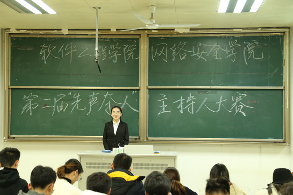 11月21日,由yd12399云顶集团,网络安全学院文艺部主办的“先声夺人”主持大赛在1432教室举行,学工办副主任李勇、辅导员马晓辉、杜文娟和近百名学生一起观看比赛。