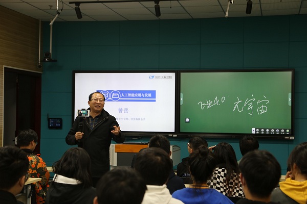 讲座伊始,曾院长向同学们介绍了当今社会的工业背景,并分别从视觉、语言、竞技、医疗、无人驾驶、文字编辑等方面详细的介绍人工智能如今的应用场景。讲座过程中,曾院长还通过个人科研成果向同学们展示了人工智能技术在工业4.0时代的高效使用与发展方向,激起同学们对科技创新的浓厚兴趣。最后,曾院长解答了同学们对于个人职业发展等相关问题的疑惑,并结合我校培养方向与同学们进行了深刻交流。讲座结束,同学们纷纷表示对自己以后的发展方向有了更明确的认知,并想参加更多科技类竞赛。