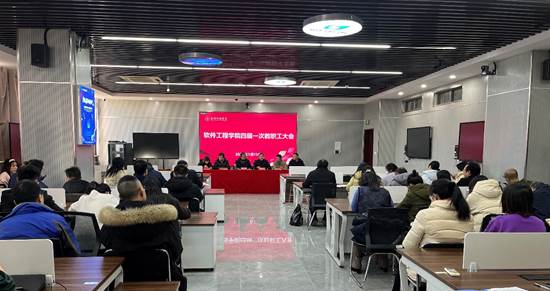 最后,我院党委书记戴军进行了总结,他回顾了2024年学院取得的特色亮点成果,并代表学院党委感谢一年来全体教职工的辛勤付出和无私奉献。在分析学院十四五期间发展存在的问题和不足的同时,为做好2025年工作,推动学院各项事业发展再上新台阶,他提出三点意见:一是坚持以党的创新理论引航定向,切实增强建设特色示范性软件学院的政治责任、使命担当。二是紧扣学校发展目标和 十四五规划收官之年重点任务抓纲带目,科学谋划提升学院高质量发展能力和水平。三是秉持全心全意为教职工服务的根本宗旨,不断发挥教代会、分工会凝心聚力和桥梁纽带作用。