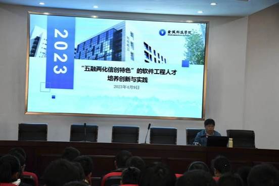 签约仪式结束后,张燕副校长给三所学校高三年级和高二年级学生作以《2023“五融两化信创特色”的软件工程人才培养创新与实践》为主题的报告。鼓励同学们努力学习,欢迎报考金陵科技学院软件工程专业,为我国信创产业发展提供新活力。