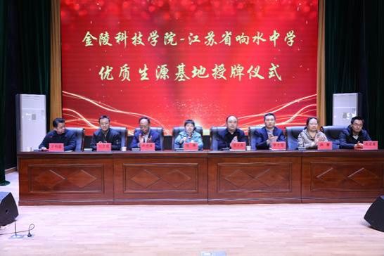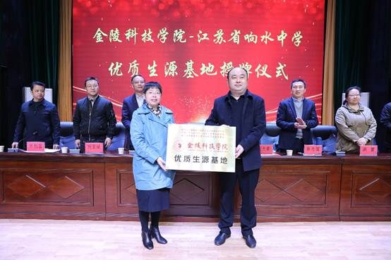 张燕副校长和三所学校领导进行了友好交流,相互介绍了各自学校发展建设情况,闵琛处长向三所学校领导介绍了我校招生情况、就业情况和在校大学生创新创业情况。张燕副校长代表学校与江苏省响水中学党委书记校长张大春 、江苏省上冈高级中学党委书记校长谈万余在“金陵科技学院优质生源基地合作协议书”上签字,并举行了优质生源基地授牌仪式。