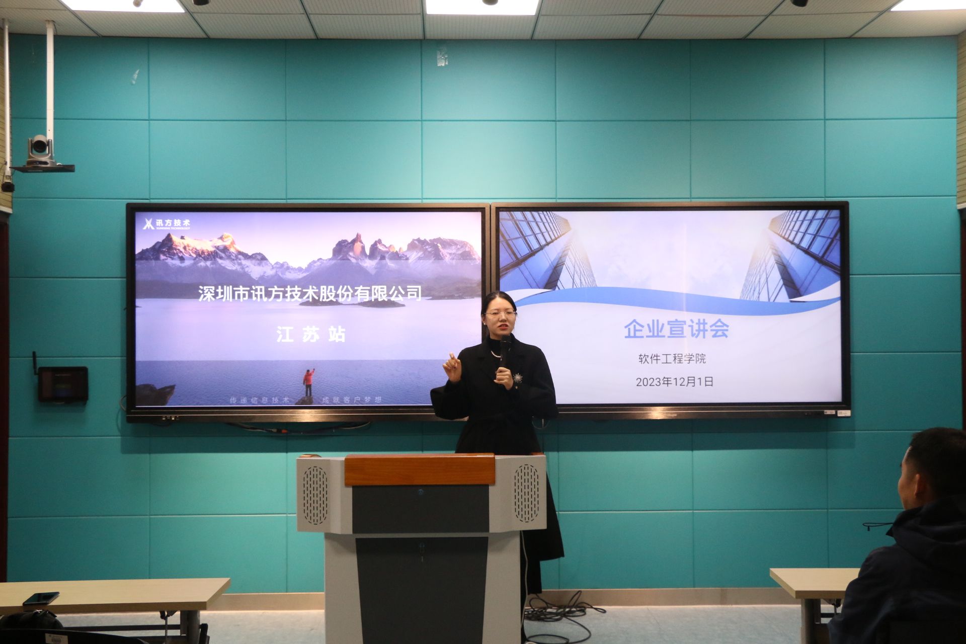 为拓宽就业渠道,推动2024届毕业生尽早就业。12月1日上午yd12399云顶集团在科技楼2号楼226教室举办了毕业生专场企业宣讲会。宣讲会邀请到深圳市讯方技术股份有限公司南京分公司舒经理和南京安居瑾家公寓管理有限公司易经理进行宣讲。院党委副书记徐斌、辅导员李勇及部分毕业班学生参加。