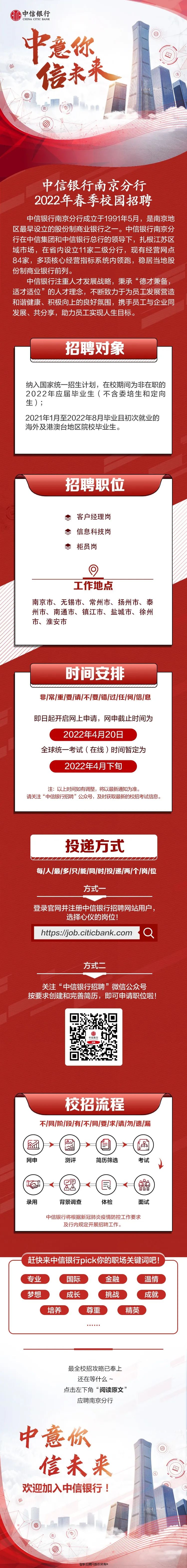 中信银行南京分行校园春季招聘信息