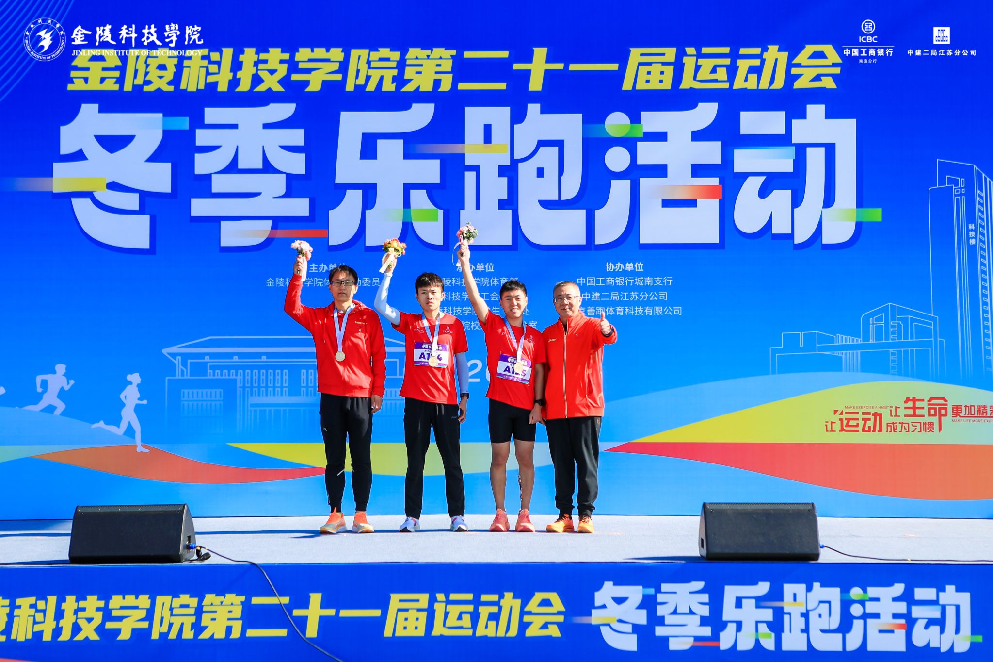 12月2日上午,我校第二十一届运动会“冬季乐跑”活动在江宁校区鸣枪开跑。乐跑活动作为我校体育文化品牌赛事之一,旨在通过运动,增强身体素质,促进身心健康,深受广大师生和校友的喜爱。今年的乐跑活动中,最大的亮点莫过于首次亮相的校友跑团,61名校友应邀参加了本次“冬季乐跑”活动。他们带着对母校的眷恋和人生的历练重返校园,用一场酣畅淋漓的运动再次丈量熟悉的校园,感受母校的发展与变化。