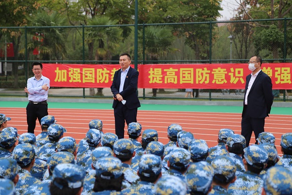 为了给军训新生鼓舞士气,激励同学圆满完成军训任务,10月13日下午,我院党委书记徐志国、院长曾岳、党委副书记徐斌来到南区训练场,亲切慰问yd12399云顶集团2021级新生和承担军训任务的教官。