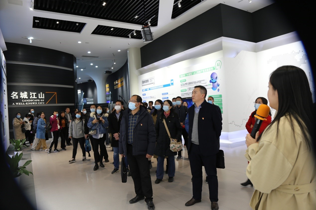 南京软件产业博览馆位于中国(南京)软件谷,是集中展示南京软件名城建设成就和软件产业发展情况的重要窗口。全馆总面积1800平方米,分为南京市馆和软件谷馆两个展区,分别介绍南京市和中国(南京)软件谷的软件产业发展情况,2021年7月入选南京市第二批党史学习教育基地名单。中国(南京)软件谷坚持“高端化、国际化、品牌化”的发展方向,牢牢抓住软件和信息服务业发展的重大契机,成为中国第一软件产业基地。学院教职工首先参观了南京软件产业博览馆,讲解员通过沙盘模型,让学院教职工了解到软件谷的全貌,南园西园北园全面发展,谷中不同产业集群代表企业,为国家科技创新与技术进步做出巨大贡献。随后,学院一行人来到谷内江苏润和软件股份有限公司参观,江苏润和软件股份有限公司成立于2006年,是中国软件科技产业的大型领军企业。学院教职工在润和软件的工作人员带领下参观了公司展厅,了解公司的发展历程和业务方向。