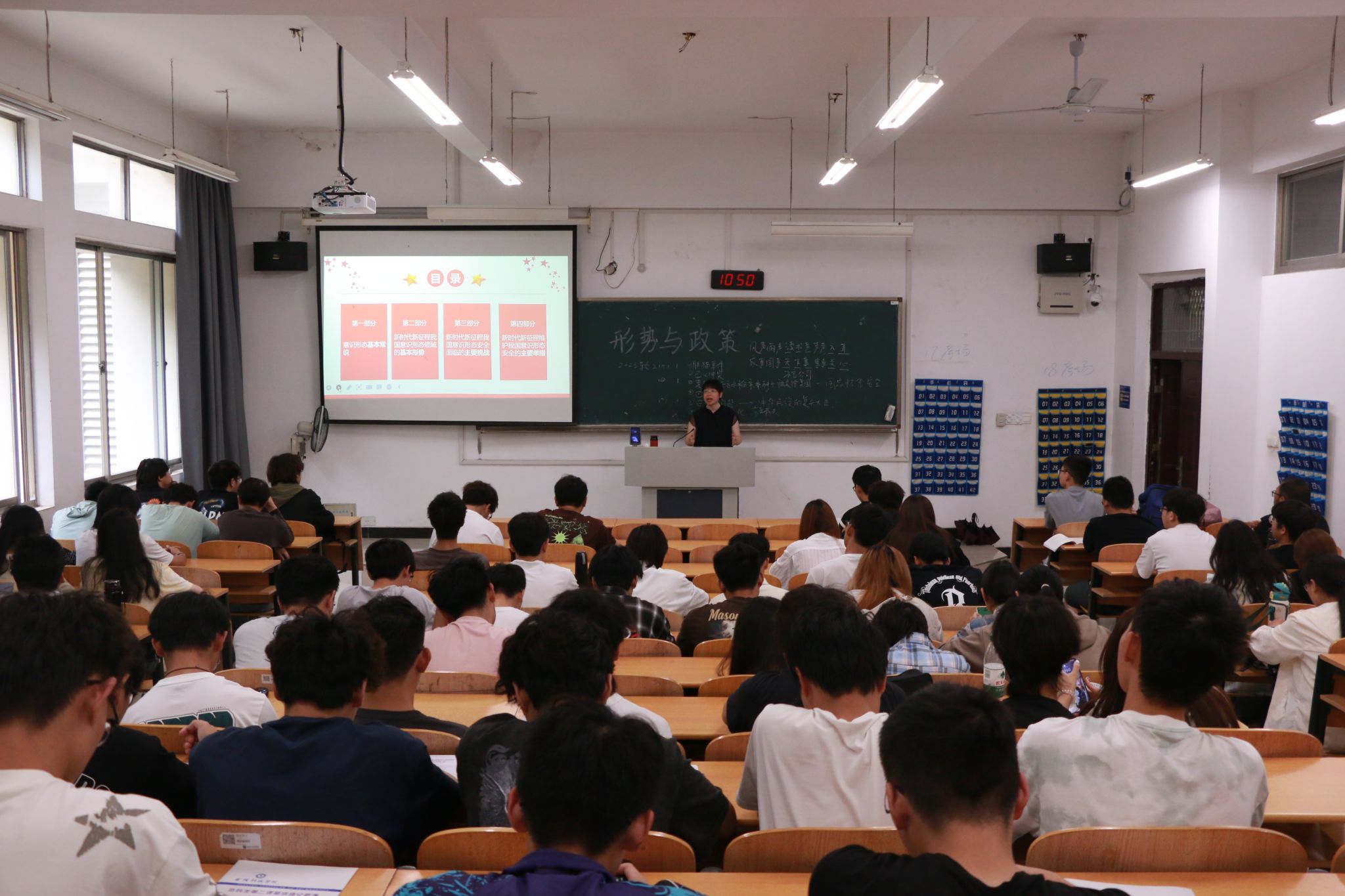 为帮助当代大学生了解目前我国意识形态领域形势,提升大学生维护意识形态安全意识,yd12399云顶集团于5月30日上午在3203教室开展了形势与政策讲座。此次讲座邀请了张燕副校长作为主讲人,2023级软件工程5、6、7班同学参加了此次讲座。