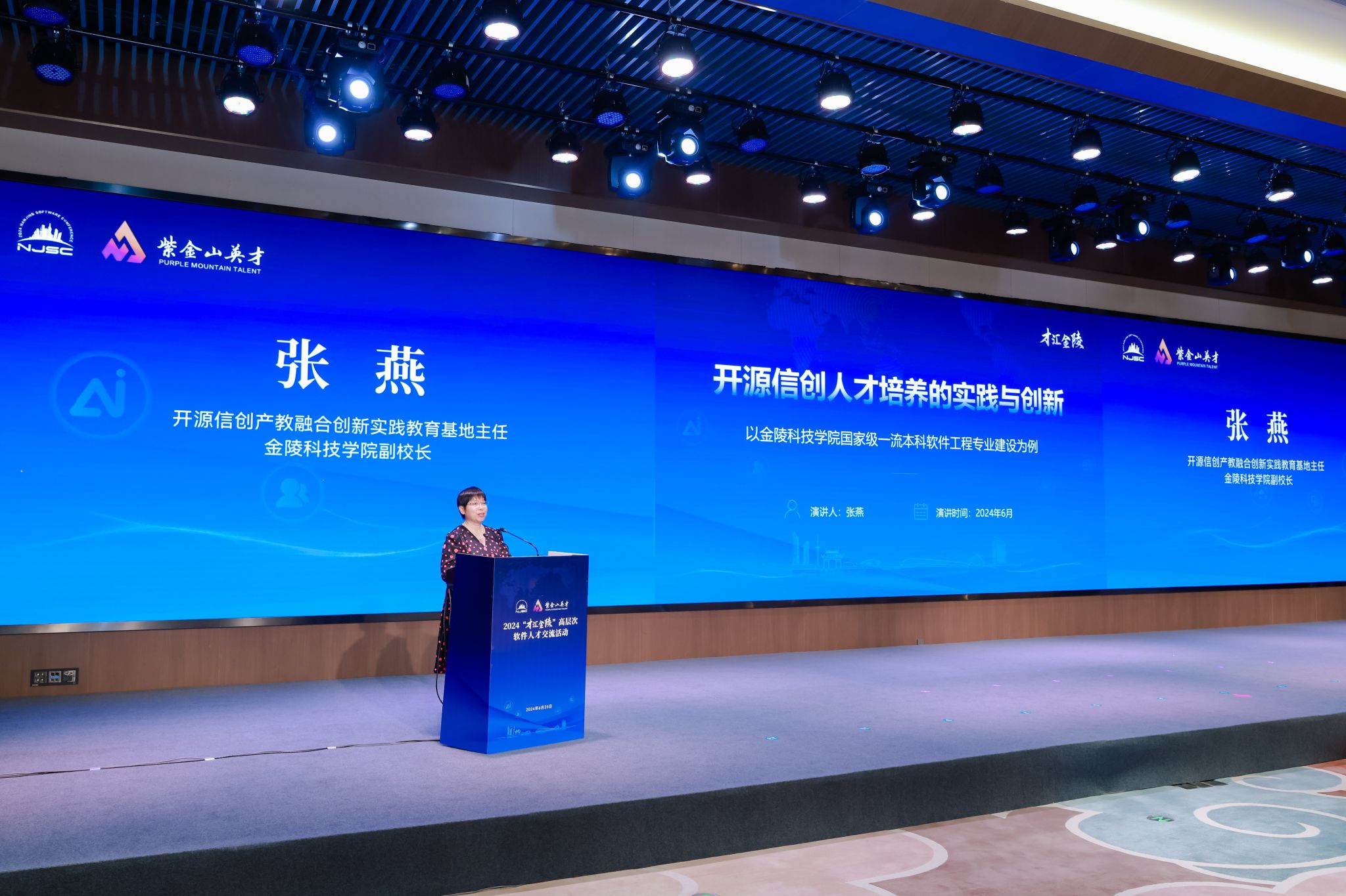 下午,2024“才汇金陵”高层次软件人才交流活动举行,搭建交流对话平台,促进高校、企业和政府之间深度合作,10项产教协同攻关创新成果发布。会上,江苏省工信厅池宇副厅长为“芯火”行动开源信创产教融合创新实践教育基地授牌,金陵科技学院张燕副校长作为基地主任接受授牌。
